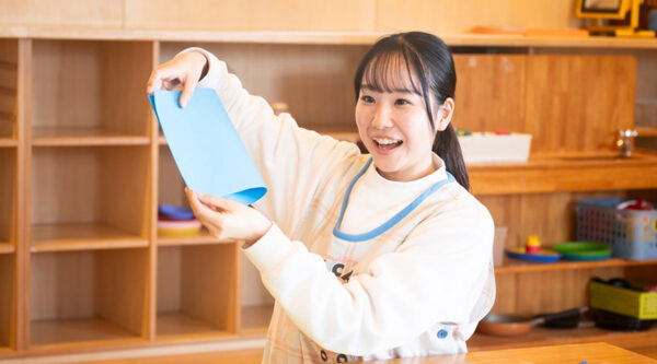 資格取得のカリキュラムに加え制作や音楽・実習事前指導などの独自カリキュラムで3年間で保育者を目指す。