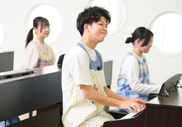 一人一台ピアノ完備の音楽室や個人練習用のピアノ自習室をはじめ、おむつ替えや沐浴などの乳児保育を行う保育実習室、幼児食の調理実習を行う実習室など、保育現場で必要な実習環境が充実しています。